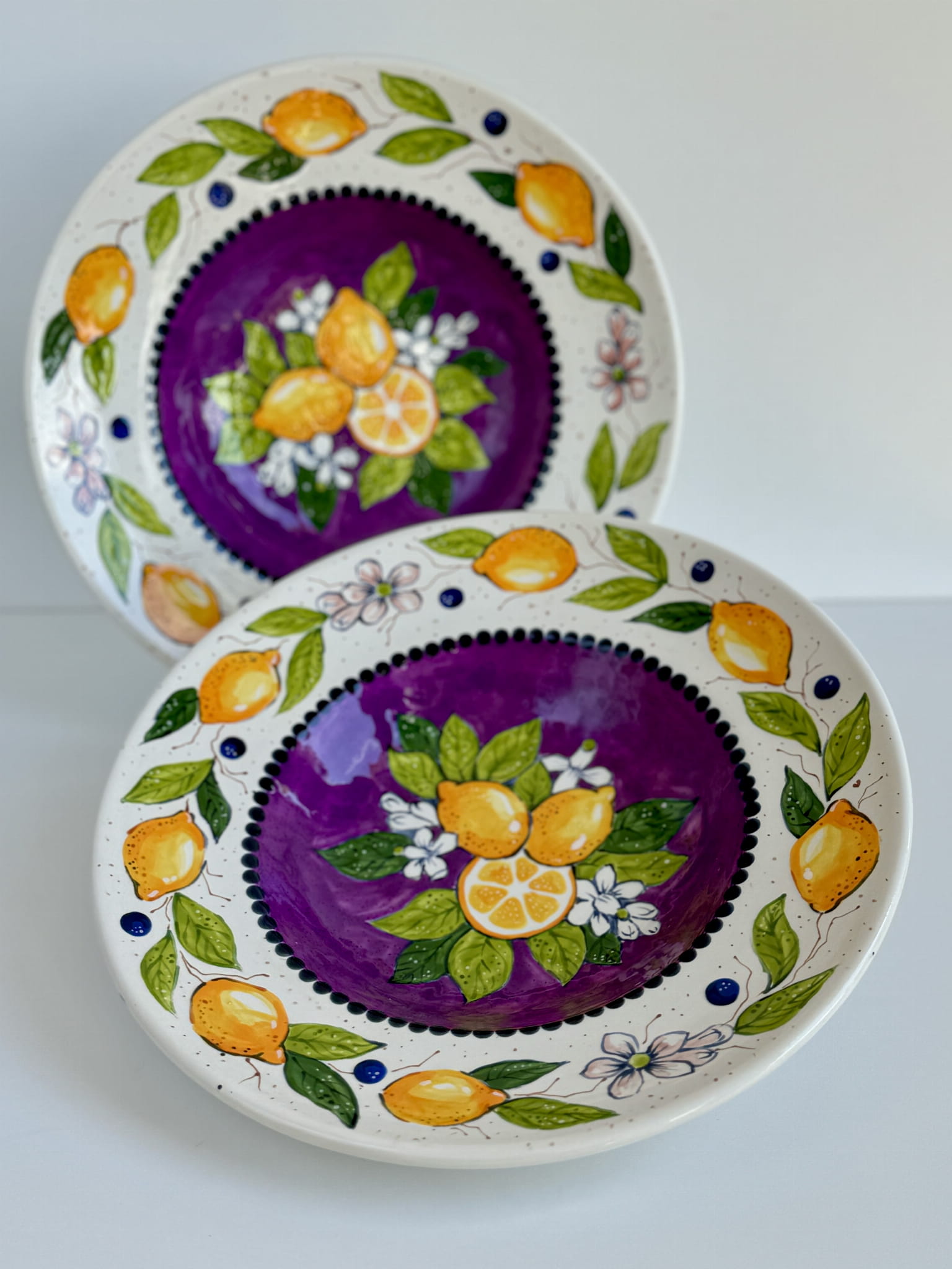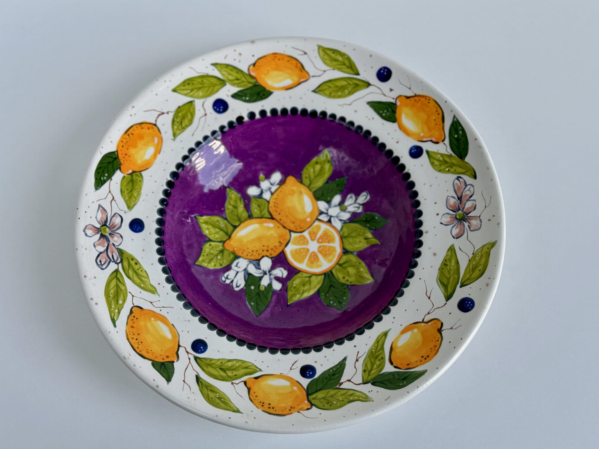 Ręcznie malowany talerz dekoracyjny (fioletowy) – Cytryny
