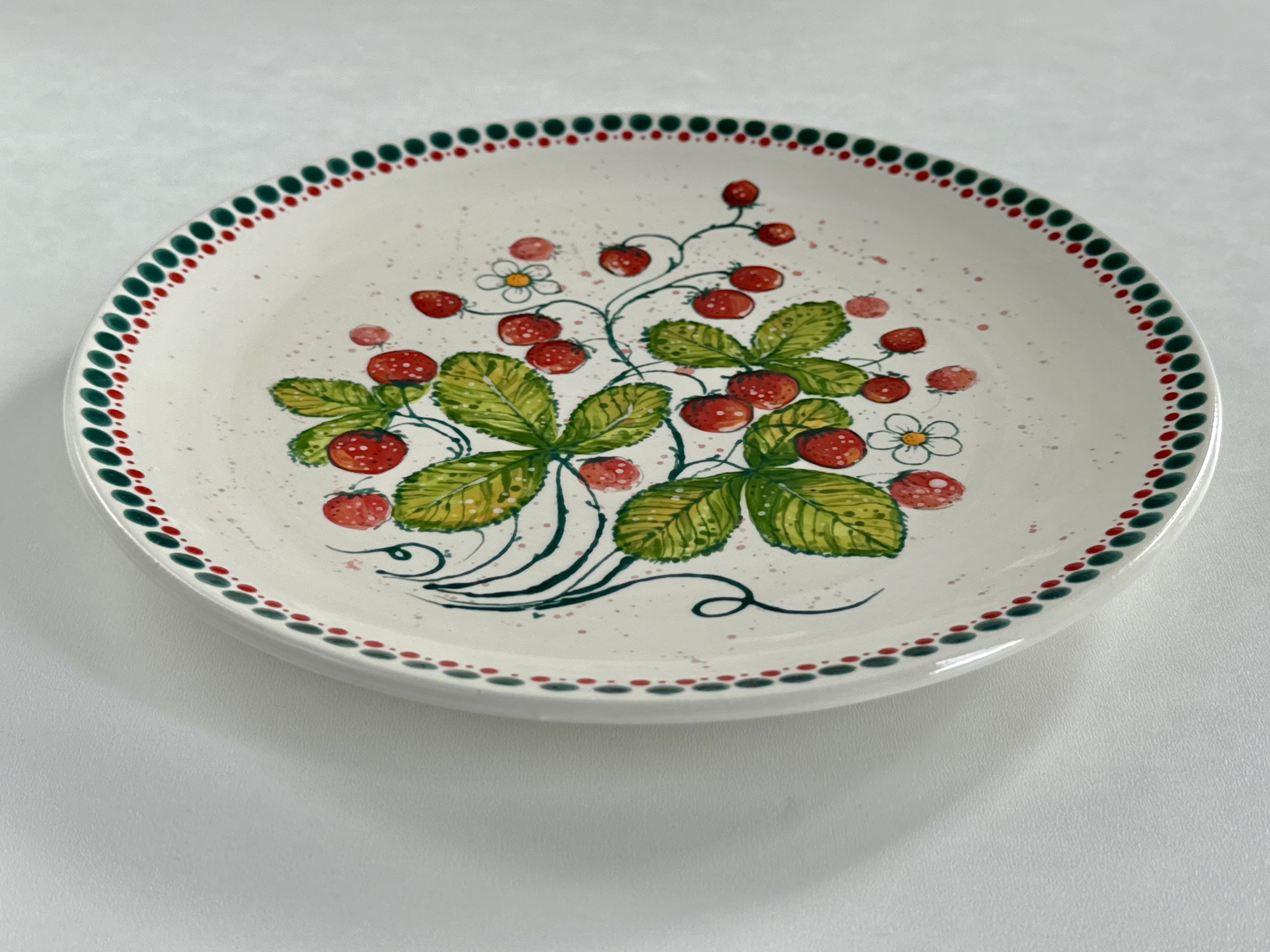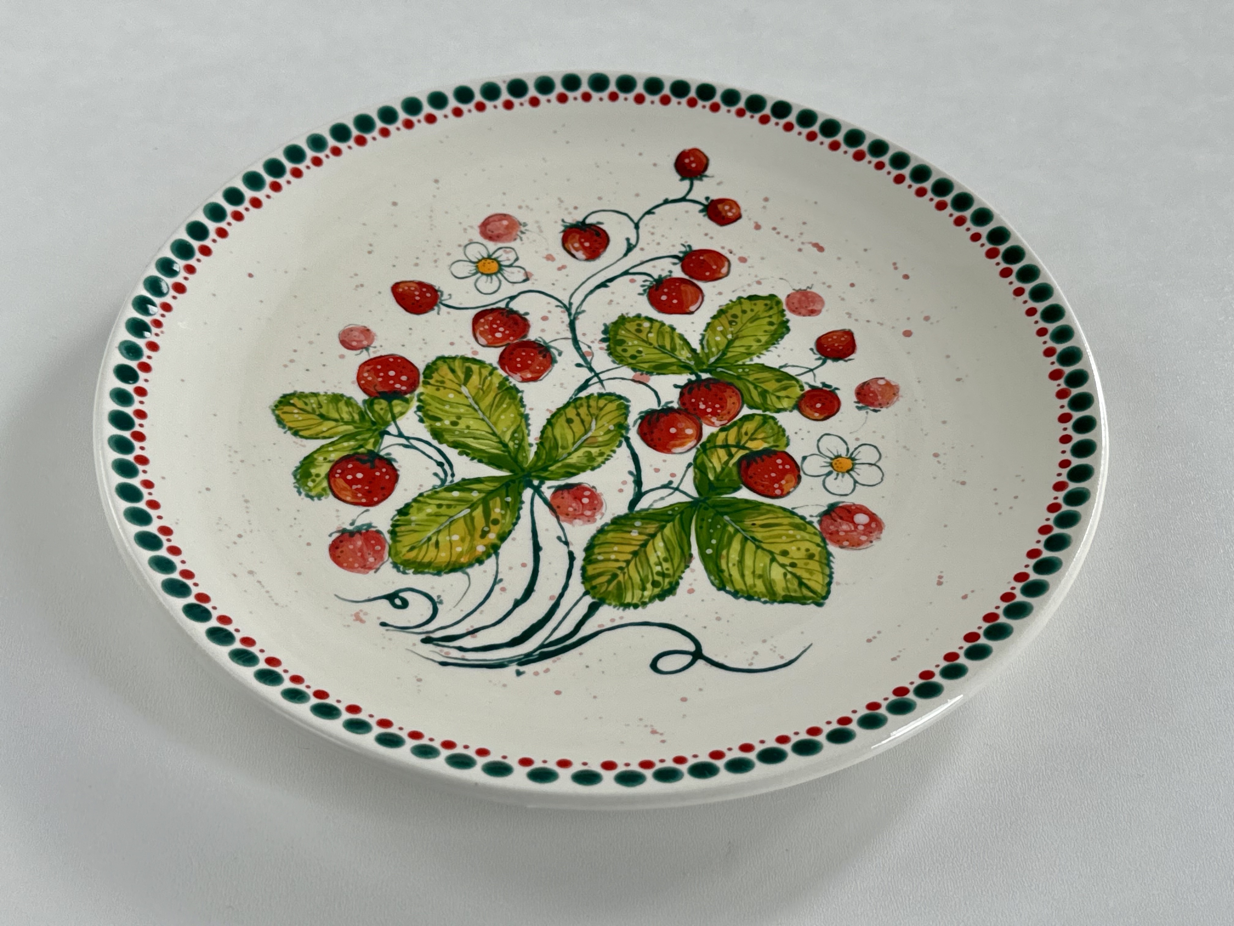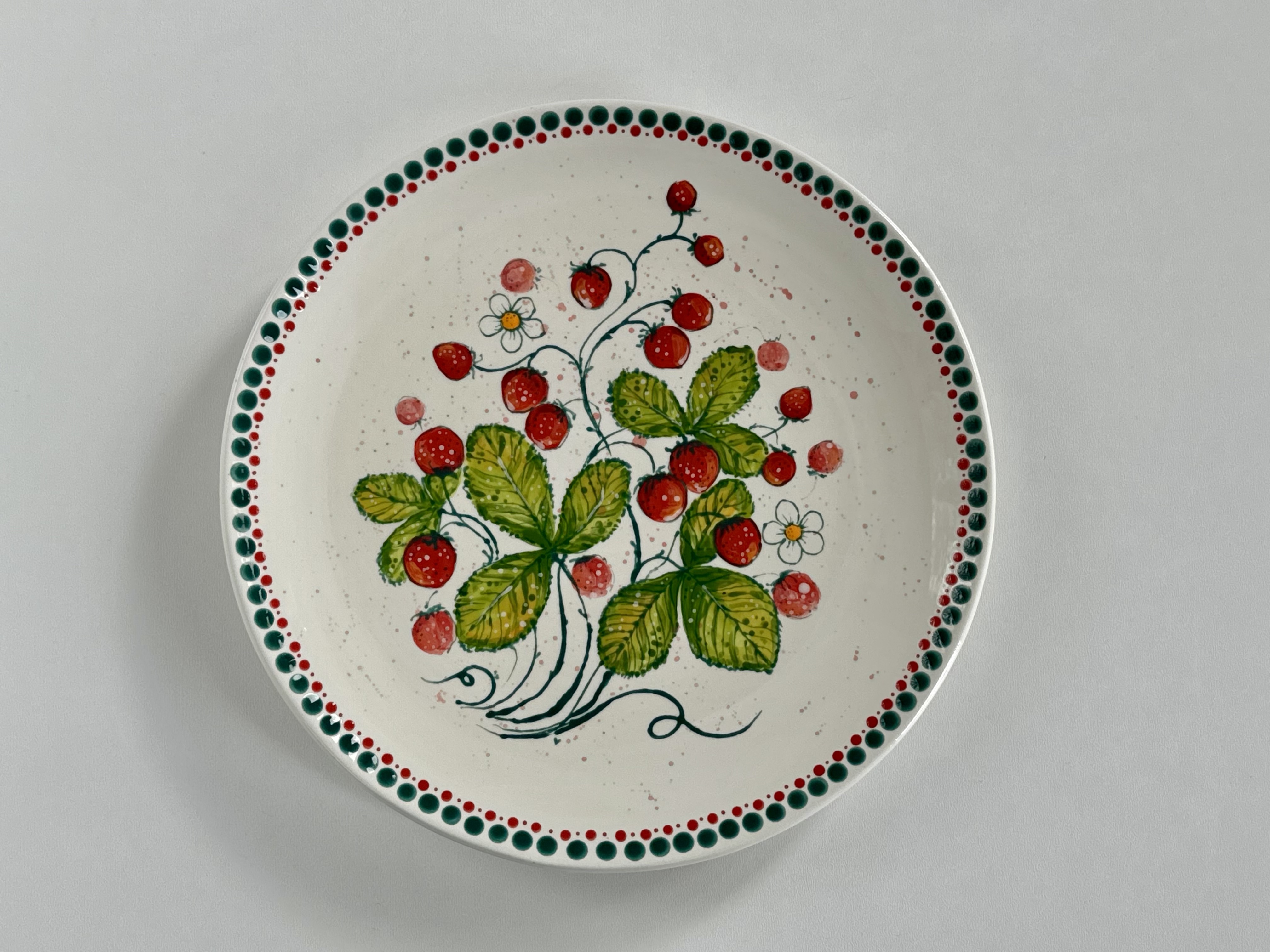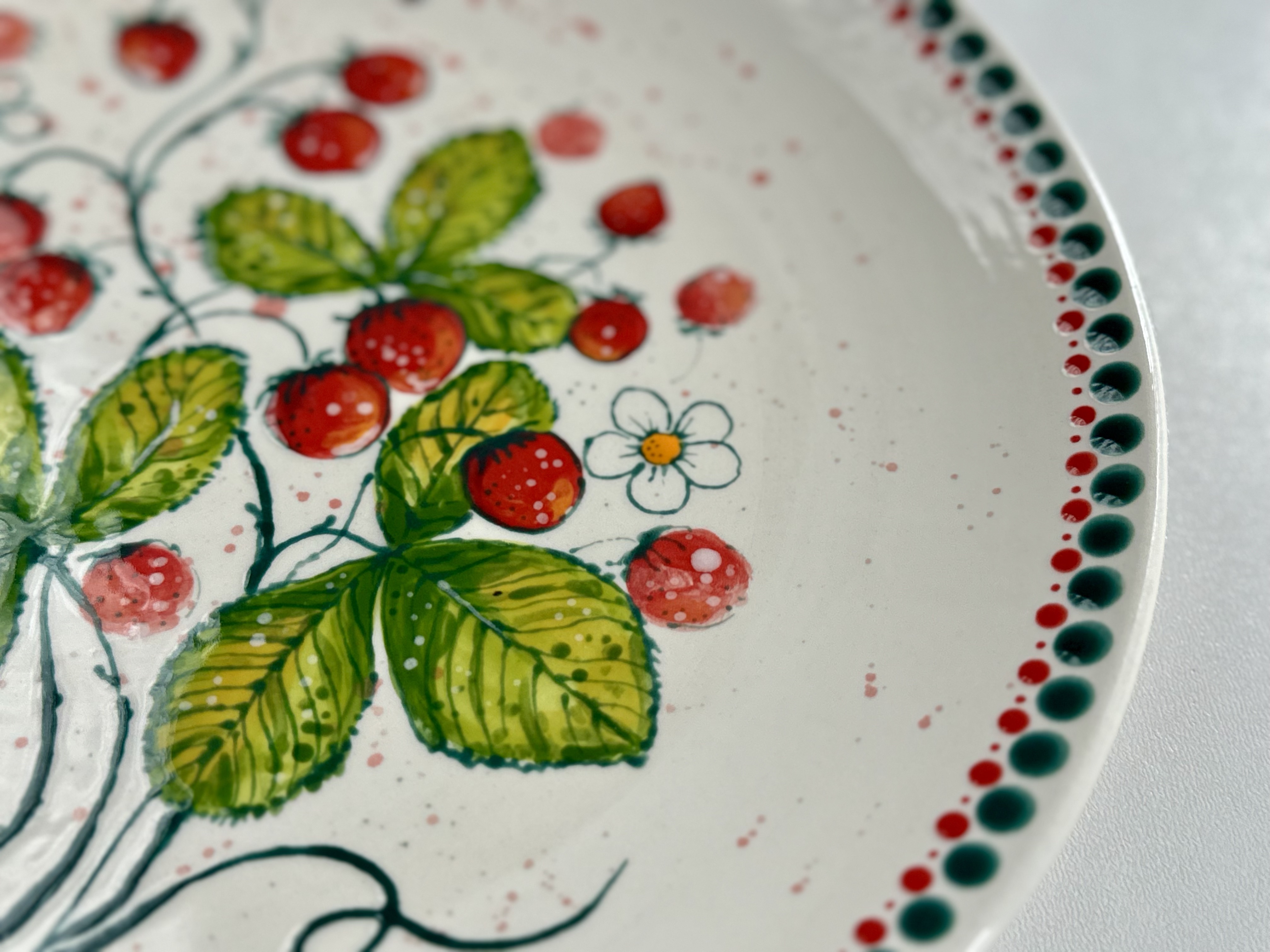 Ręcznie malowany talerz w botanicznym stylu - Poziomki